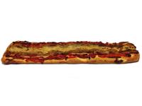 Deliciosa coca de verduras que se sirve congelada.