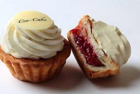 Una pieza elegante, atractiva y... deliciosa. Al menos, de eso tiene pinta. La última obra de la pastelería de Mey Hofmann es esta 'cup cake' elaborada con su masa de croissant. La idea nos puede sonar porque el mundo de la repostería atraviesa una época de mezcla de conceptos pero el resultado es totalmente diferente. Esta cro-cake está rellena de frambuesa con una cobertura de crema de vainilla. Un delicioso postre o tentempié, de textura suave y aspecto innovador. ¿Cuántos quieres?